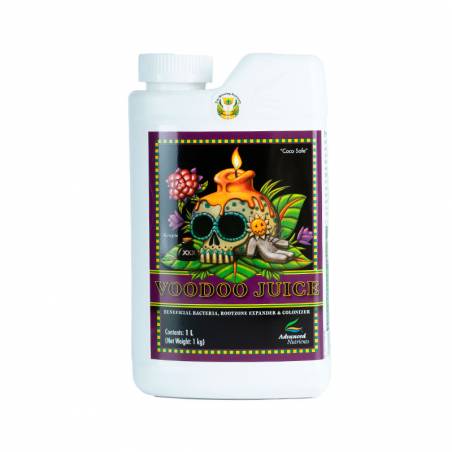 Voodoo Juice Advanced Nutrients es un coctel de microorganismos que invaden el sustrato y harán que las raices se multipliquen, de esta manera conseguiremos una plantas saludables. Es compatible para todo tipo de cultivos.