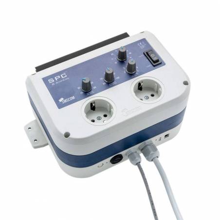 Spc 28A Sms Com es un controlador de clima de 28 amperios. Con este controlador podemos controlar los ventiladores de nuestra zona de cultivo de forma automática y precisa.