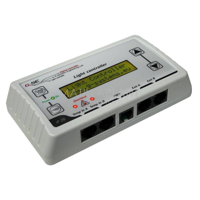 Este controlador de luz con una pantalla de 2x16 caracteres cubre todas las necesidades básicas. Tiene un teclado con 4 botones, ARRIBA, ABAJO, ENTER, Guardar/Salir.